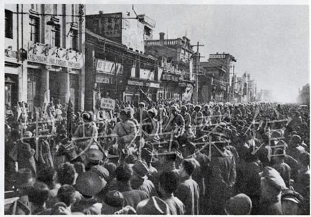5.人民解放軍進(jìn)駐北平,通過前門大街的照片