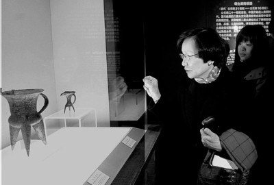 昨日,臺北客人來到上博,立即同上博方面進行了極其融洽的商談,由于相談甚歡,遲遲不能結(jié)束,原定的參觀時間不夠用了,所以上博方面只好請臺北客人進入地下的貴賓廳,從庫房里精選出館藏珍品進行展示。由于來訪的大多是臺灣的文物專家,因此客人們看得十分仔細,甚至帶著學者的眼光來探究。“周功鑫女士就是漆器方面的專家,我們也展示了漆器,周院長看得十分仔細。 ”上博接待人員透露,展示給臺北客人看的包括青銅器、瓷器、書畫等,共10多件重要藏品。
