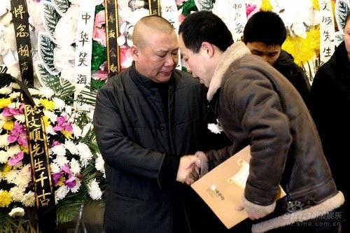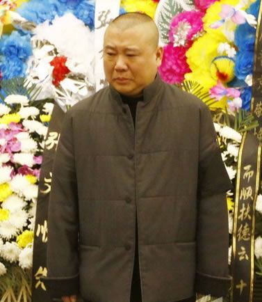 上午7點44分,德云社內(nèi)部的吊唁活動率先進行。郭德綱、王惠夫婦,于謙、王海、李菁、何云偉、曹云金等骨干演員率百名演職人員向張文順先生的遺體默哀,禮畢后人人號啕大哭,痛不欲生。雙眼紅腫、哽咽不斷的郭德綱嘆息說,張先生走得太早了,自己失去了一位摯友,他愿老人能夠在天享福,歡笑來生。郭德綱承諾會照顧張夫人,并用心培養(yǎng)張文順的外孫寧云祥在德云社說好相聲。