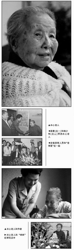想起1963年春末,北京東城的一次中國作家協(xié)會的筆會上,我曾遠(yuǎn)遠(yuǎn)地看到過這位冰心先生?赡菚r候,我還不是作協(xié)會員。只感覺冰心正微笑著,遠(yuǎn)視著我……