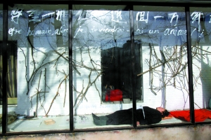 昨日下午798南門(mén)附近799藝術(shù)空間櫥窗內(nèi),藝術(shù)家郝光在此搭起了帳篷,并移居于此。這個(gè)被郝光命名為“退一萬(wàn)年櫥闊天空”的行為藝術(shù),是藝術(shù)家維權(quán)事件的進(jìn)一步升級(jí),郝光想借此表示對(duì)798物業(yè)的抗議。對(duì)此,798藝術(shù)區(qū)建設(shè)管理辦公室主任陳勇利表示,郝光與物業(yè)的糾紛屬于經(jīng)濟(jì)合同糾紛,物業(yè)方七星集團(tuán)已經(jīng)起訴至法院,屆時(shí)會(huì)通過(guò)法律來(lái)裁決。