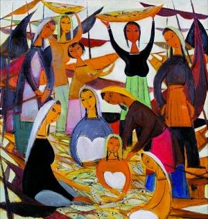 拍賣現(xiàn)場,《漁獲》作品估價是300萬至350萬港元,結(jié)果被一亞洲藏家以1634萬港元拍得。這一成交價不僅位于此場拍賣首位,且再次刷新了畫家個人世界拍賣紀(jì)錄。而成交價位于第四的朱沅芷的《最后晚餐》也以602萬港元打破畫家個人世界拍賣紀(jì)錄。