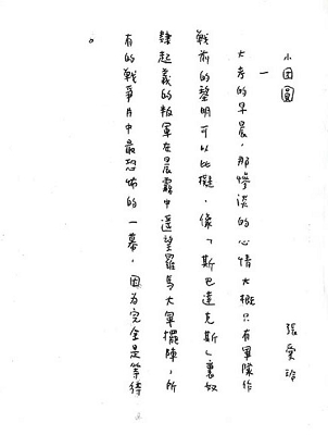 這兩個(gè)月我一直在忙著寫長(zhǎng)篇小說(shuō)《小團(tuán)圓》,從前的稿子完全不能用,F(xiàn)在寫了一半。這篇沒有礙語(yǔ)! 我在《小團(tuán)圓》里講到自己也很不客氣,這種地方總是自己來(lái)揭發(fā)的好。當(dāng)然也并不是否定自己。