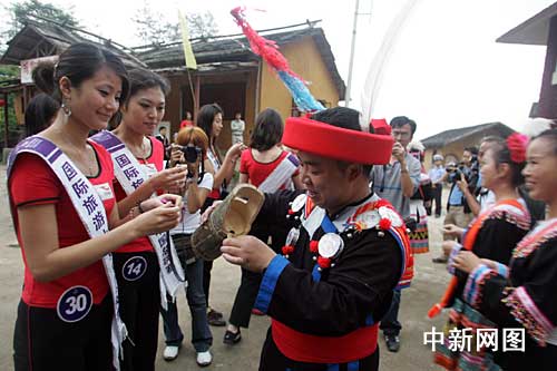 中新網4月26日電 (記者 應妮)在廣東參加2009國際旅游小姐中國區(qū)總決賽的61位選手近日來到連南縣,走進嶺南地區(qū)少數民族——瑤族生活的世界里,探尋和了解瑤族人時代生活的風俗風情。