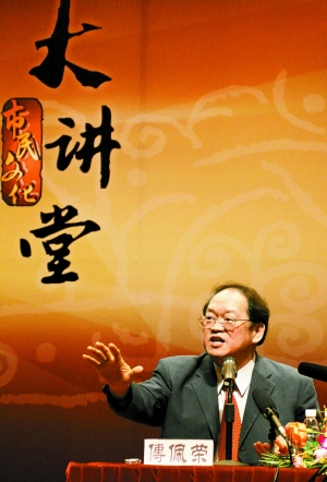 傅:父母親現(xiàn)在很年輕,孩子很小,他拼命培養(yǎng),但是他沒有想到,孩子太杰出的話,晚年就很冒險了。為什么?杰出的孩子,恐怕要為天下人服務(wù)去了。像在臺灣就有一個例子,一對老夫婦,生了八個孩子,全部到美國去,最小的那個都拿到了碩士,還有一個院士,都很有成就,但是兩老沒有人管,最后他們子女說,到美國來吧。他們?nèi)チ艘荒昃突貋砹,說不愿意當游牧民族,這一家住一個月,那一家住兩個月,這怎么是人的生活呢。就回到臺灣去,最后老太太過世,留一張條子給她先生,你還是跟我走吧。最后老先生也過世了。像這樣的故事,你看了就會說,這一對老夫妻,年輕的時候,好好地培養(yǎng)他們的孩子,孩子長大之后要孝順你,他也是兩面為難。因為是一個人才,他就不能只顧自己,要負責(zé)實驗室里面的東西,要替很多人策劃。