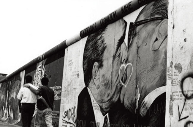 1961 年柏林墻建起后,上面逐漸出現(xiàn)了大量涂鴉作品。由俄羅斯藝術家德米特里·弗魯貝爾(DmitriVrubel)創(chuàng)作于20 年前的《兄弟之吻》,可算是其中最著名的!缎值苤恰访枥L的是前民主德國領導人埃里!ぐ杭{克(Erich Honecker)和前蘇聯(lián)領導人勃列日涅夫(Leonid Brezhnev)嘴唇對嘴唇的親吻,帶有很強的諷刺意味。多年來,這幅涂鴉已經(jīng)成為柏林著名的旅游景點。弗魯貝爾在得知成名作將消失后,感到很遺憾,不過他從畫作的歸屬方East Side 畫廊獲得了3000 歐元的補償,而且還被邀請將來重新繪制一幅《兄弟之吻》,“當然不再是從政治的角度,而是與愛有關”。
