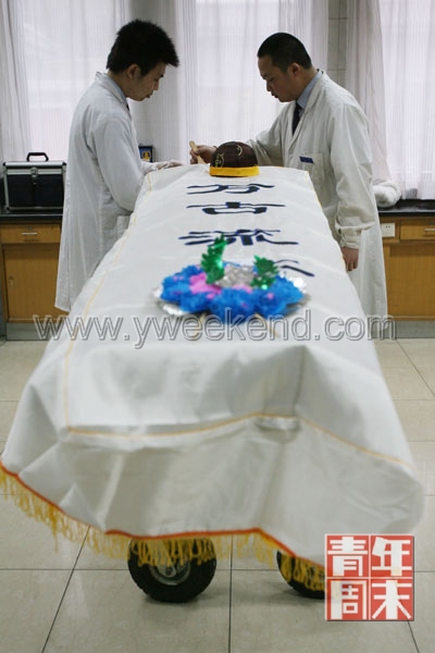 這是年輕的整容師一天中最普通的一單工作,只用時(shí)10分鐘。一天最少完成20具。對(duì)于張洋來說,早已習(xí)慣了這份工作!盎蛘哒f,我必須學(xué)會(huì)麻木。”張洋告訴記者。
