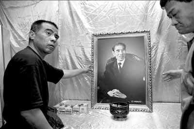 在李老家的臥室里,李文華的老伴苑福云老人在整理著李老生前的一大摞照片。老人一會(huì)兒翻看當(dāng)年姜昆、李文華合作時(shí)意氣風(fēng)發(fā)的舞臺(tái)照,一會(huì)兒又端起李文華的單人藝術(shù)照,不時(shí)念叨說(shuō):“你看他年輕時(shí)候多喜興,這張穿中山裝的就特精神!痹防细嬖V記者,靈堂中擺放的那張巨幅彩照,是中國(guó)照相館的師傅給拍的!2005年,中國(guó)照相館專(zhuān)為明星拍肖像照片的師傅,現(xiàn)在看來(lái),這張照片拍得特別好,誰(shuí)也看不出他患病來(lái),精神很振作!