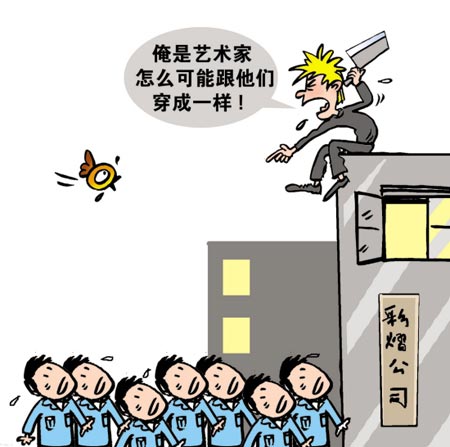 “我是搞藝術的人,喜歡個性張揚,卻偏偏把我整得跟他們一模一樣!”日前,因不滿公司統一制服,且設計提成未給足,廣州某公司工業(yè)設計經理彭同學第三次報警,且以跳樓絕食相要挾。