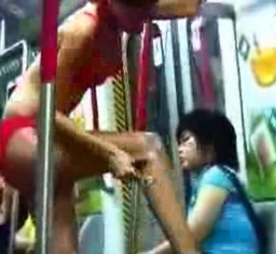 昨天(6月2日),記者在網上搜索,發(fā)現廣州地鐵上也曾有多宗雷人行為藝術表演。在一張名為“廣州地鐵上的雷人一幕”照片上,兩名打扮女性化的男子,各自抱著一個枕頭坐在地鐵上談笑風生。此外,還有一段“廣州地鐵上的行為藝術”視頻更是讓人不可思議,一名打扮成空姐模樣的女子上到地鐵后,立即放下行李箱,脫去外套和襯衣,把地鐵扶桿當作晾衣架,全身上下只剩下內衣,她不緊不慢拿出鏡子抹完口紅后,把腳踏在車廂內的坐椅上,然后刮起了腿毛,之后,又把衣服穿上,不少乘客見狀紛紛躲避。