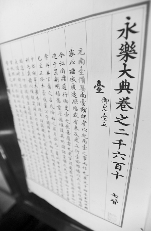 “除了永樂(lè)年間的版本,確實(shí)還存在一個(gè)版本。”姚群民告訴記者,明成祖朱棣對(duì)《永樂(lè)大典》的喜愛(ài)是不言自明的,可在他之后,明朝各代帝王中查閱過(guò)《永樂(lè)大典》的卻寥寥可數(shù)。但明世宗嘉靖皇帝卻是例外。嘉靖對(duì)《永樂(lè)大典》愛(ài)不釋手,據(jù)說(shuō)在他的床榻上,就放有《永樂(lè)大典》以備查看。他登基以來(lái),更將其作為必備的參考經(jīng)典,并時(shí)常在朝庭上引用。