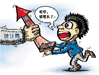 詞匯釋義:近來(lái)的新詞中,“被”字輩搶盡風(fēng)頭,前有“被自殺”,后有“被就業(yè)”,如今的掌門人是“被增長(zhǎng)”。說(shuō)的是國(guó)家統(tǒng)計(jì)局近日公布的一份統(tǒng)計(jì)顯示,上半年全國(guó)城鎮(zhèn)居民人均可支配收入實(shí)際增長(zhǎng)11.2%,農(nóng)村居民增長(zhǎng)8.1%,遠(yuǎn)超上半年7.1%的經(jīng)濟(jì)增速。從前大家都喊工資收入趕不上GDP增速,如今在數(shù)據(jù)上倒是真實(shí)現(xiàn)了,而且還是在全球金融危機(jī)的背景下。善于質(zhì)疑的網(wǎng)友們,更懂得拿數(shù)據(jù)說(shuō)話,于是紛紛在網(wǎng)絡(luò)上曬工資。結(jié)果顯示,我們的工資根本沒(méi)怎么漲,我們的收入原來(lái)是“被增長(zhǎng)”了,亦即口袋沒(méi)見(jiàn)鼓起來(lái),卻硬要被人說(shuō)漲工資了。此后,許多媒體紛紛表示,相信國(guó)家統(tǒng)計(jì)局,但不能保證下面報(bào)上來(lái)的數(shù)據(jù)是否造假。本刊之前還就“被就業(yè)”談過(guò)數(shù)據(jù)造假的誘因以及惡劣后果,所以不再詳細(xì)討論,但要強(qiáng)調(diào)一句話,造假數(shù)據(jù)猛于三鹿奶粉。