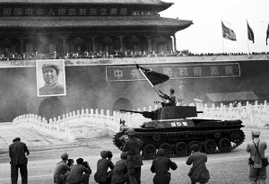 1959年國慶10周年閱兵,具有世界先進水平的國產(chǎn)59式坦克首次在天安門廣場亮相。在受閱的6種型號的火炮中有5種是中國自己制造的。國產(chǎn)的56式?jīng)_鋒槍、56式半自動步槍也都參加受閱。受閱武器裝備的國產(chǎn)化程度大大提高,有些已處于世界先進水平,標志著中國國防工業(yè)由仿制進入了自行設計制造的嶄新階段。