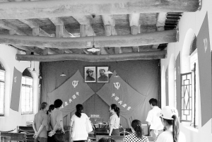 與北京的“人民大會(huì)堂”截然不同的是這里極其簡(jiǎn)樸的環(huán)境。八月初的一天,前來(lái)參觀的人們排著隊(duì)有秩序地瞻仰著這里的一切。撫摸著一排排簡(jiǎn)陋的桌椅,每一位觀眾心頭都難掩無(wú)限感慨。