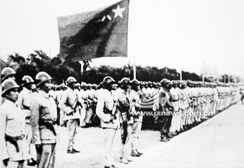 今年10月1日,恰逢建國60周年。每次隆重莊嚴(yán)的閱兵儀式,都會成為國慶的重頭戲。60年前,新中國開國大典的閱兵儀式是如何訓(xùn)練的?當(dāng)年從江西走出的199師師長、獲得少將稱號的李水清帶領(lǐng)的12個步兵方隊,又是怎樣成為開國大典閱兵式陸軍第一方隊的?17日,江西著名攝影師戴廷耀向記者講述了江西老紅軍李水清當(dāng)年帶隊在天安門受閱的背后故事。