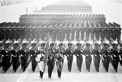 6 閱兵的“中國特色”。古今中外的閱兵典禮,受檢閱的官兵或高呼“萬歲”,或高呼“勝利”,從愷撒到拿破侖,從沙皇到凱瑟琳,從華盛頓到羅斯福,幾乎千篇一律。而我軍閱兵式,閱兵首長總要親切地問候:“同志們好!”接著是山呼海嘯般地回答:“首長好!”閱兵首長又慰問道:“同志們辛苦了!”同樣是山呼海嘯般地回答:“為人民服務!”這一問一答,分明是在向世人昭示:我軍是全心全意為人民服務的人民子弟兵,是官兵一致、軍民一致、為著共同理想信念而團結(jié)起來的鋼鐵長城,是區(qū)別于一切剝削階級軍隊的新型武裝力量,而官兵關(guān)系融洽、軍民團結(jié)如一人的軍隊必將無敵于天下!