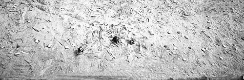 為什么叫恐龍澗?記者決定一探究竟。在諸城龍都街道庫溝村北的一個(gè)小嶺下,一條被塑料布和草氈覆蓋的隆起帶橫亙在黃土丘之間?脊湃藛T向記者介紹說,這是其中一處大型恐龍群的“墓地”,因化石眾多,所以得名“恐龍澗”。