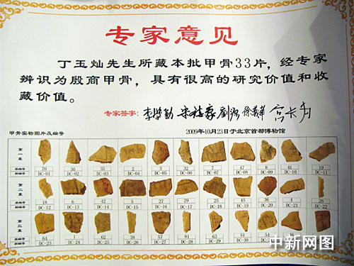 在本次論壇上,廈門當(dāng)代置業(yè)集團(tuán)副總裁、廈門復(fù)文美術(shù)館副館長、福建海泉蘭花實(shí)業(yè)有限公司董事長丁玉燦,將個(gè)人繼承、收藏的,經(jīng)現(xiàn)場專家組“辨識為殷商甲骨,具有很高的研究價(jià)值和收藏價(jià)值”的三十三片甲骨,無償?shù)鼐栀浗o南靖縣人民政府永久收藏。