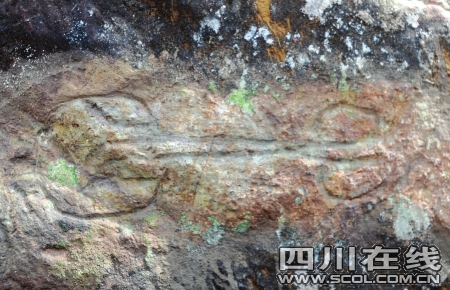 同時,在石壁上還發(fā)現一種蛇的圖形。但看上去又不像蛇,因為在圖形下方被古人添了幾點,又十分像龍!斑@種標記在現實生活中只能在彝族畢摩文獻中找得到,被尊為畢摩護法神!卞X玉趾解釋說。