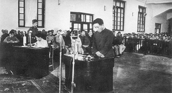 為了這次出庭,王克峰頭一次穿上整潔的灰色毛料中山裝、黑皮鞋,拎的是米黃色皮包,在法庭上接受公訴人、審判長、辯護人、被告人的質(zhì)疑詢問,以鑒定證據(jù)支持公訴。整個過程,都用電影膠片給記錄了下來。被告人住岡義一當庭認罪,請求審判長“給我最嚴重處分”。