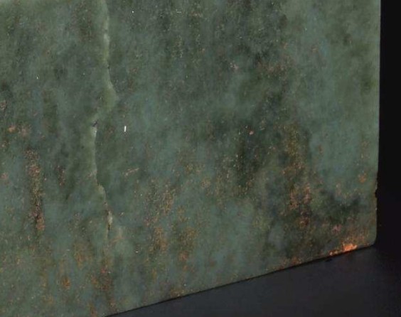李教授現(xiàn)為江蘇省書畫鑒定小組主任委員,他潛心研究篆刻三十多年,他向記者介紹:清代乾隆二十五年后時(shí)玉器制作進(jìn)入玉器史上的鼎盛期,而在玉器質(zhì)地的選料上,都是由新疆大吏搜羅開采頂級的上品而充貢內(nèi)廷。而且皇帝玉璽成品都很規(guī)整,幾乎做到玉璽無筋、無柳、無瑕,用于制作玉璽都為最好的肉質(zhì),開料與玉璽制成的比率很低,原料的浪費(fèi)極大,為的就是選料的純靜,美玉良工以確保玉璽的精美度,而此次拍賣的乾隆“八徵耄念之寶”青玉璽,目鑒便知玉質(zhì)上有大片的柳絮紋。(圖一)玉質(zhì)當(dāng)屬普通青玉料,皇家玉璽是不會(huì)選這種檔次的玉料制作的!