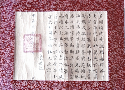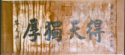 1916年辛亥首義志士大黃申薌之母胡太夫人七十壽誕之際,時(shí)任民國(guó)大總統(tǒng)黎元洪為之題寫(xiě)”得天獨(dú)厚“橫披,以賀其壽。據(jù)紀(jì)念館館長(zhǎng)梁華平介紹,受以往對(duì)其政治評(píng)價(jià)的影響,黎元洪手書(shū)真跡未受應(yīng)有重視,大多散失。這件“得天獨(dú)厚“橫披手跡更是彌足珍貴。 (記者 蔣太旭 通訊員 何廣 實(shí)習(xí)生 趙紅)