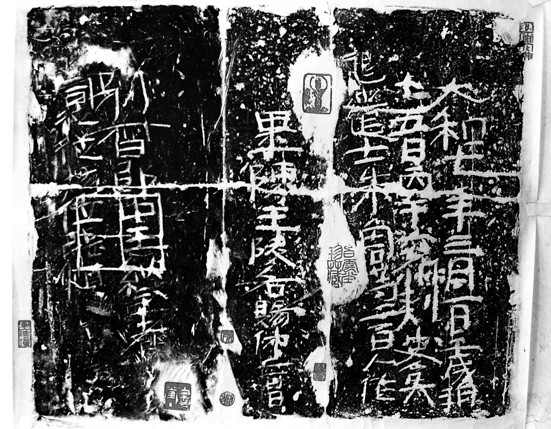 今天,曹植墓前獨(dú)留一方珍貴的隋代石碑,供游人憑吊。碑文記載,隋開皇十三年,曹植墓曾塌壞,“兆瑩崩蒼,茂響英聲,遠(yuǎn)而不絕!边@塊碑,三面刻字,無撰文、書丹者姓名,字體篆、隸、金、楷相雜,自成一格。清康有為在其《廣藝舟雙楫》一書中,高度評價了碑刻書法:“快刀斬陣,雄快遒勁者,莫若《曹子建碑》矣!