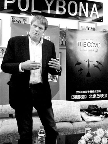 在放映活動(dòng)開始前,《海豚灣》制片人漢布爾頓接受了數(shù)家媒體記者的采訪,并回答了本報(bào)記者提出的問題。