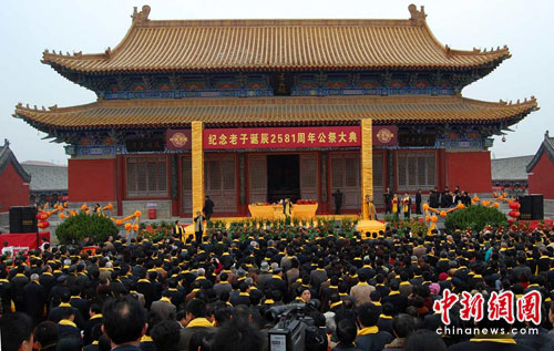 中新網(wǎng)鹿邑3月30日電 (記者 曹錚 通訊員 蔣保慶 沈力) 3月30日,是我國(guó)古代偉大的思想家、哲學(xué)家、道家學(xué)派創(chuàng)始人老子誕辰2581周年紀(jì)念日。當(dāng)天上午,在老子故里河南省鹿邑縣明道宮玄元殿前,紀(jì)念老子誕辰2581周年公祭大典隆重舉行。