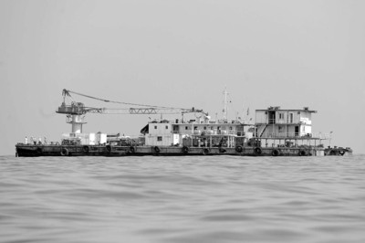 海面上海風(fēng)颼颼,盡管身形龐大的“南天順”穩(wěn)如泰山,但摩托艇卻在海面上搖搖晃晃。借著高倍相機(jī)鏡頭,記者注視著“南天順”打撈船上的舉動(dòng)。上午10時(shí)左右,2名身穿潛水服的隊(duì)員潛入水下,大約半個(gè)小時(shí)后,一批下水隊(duì)員出水。隨后,另有一批隊(duì)員再次下水作業(yè)。
