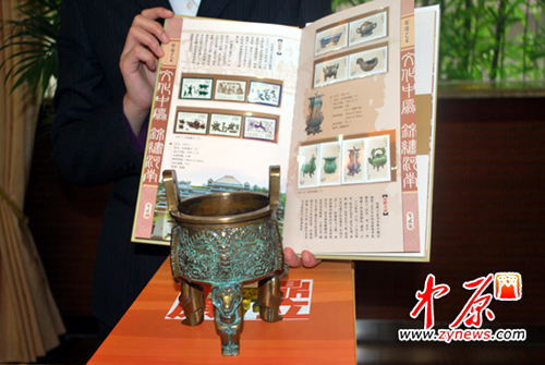 本次活動還現(xiàn)場展示了由中國郵政集團公司批準發(fā)行的《河之南》郵票珍藏冊,《國寶郵情》雙連壺。內(nèi)容涵蓋建國珍郵、中原“國寶”、貴金屬等多個方面。該系列郵票濃縮了中原文化的博大精深,彰顯中原文化在中國文明史上的核心地位。這也是鄭州市郵政局連續(xù)五年為拜祖大典奉獻的文化盛宴。