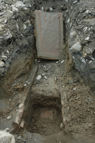 近日,四川省江油發(fā)電廠在維修老廠區(qū)染料車(chē)間道路時(shí)發(fā)現(xiàn)古墓,廠方立即停工保護(hù)現(xiàn)場(chǎng)并報(bào)告市文管所前來(lái)調(diào)查。該墓葬為唐代石槨墓葬。墓長(zhǎng)2.45米,寬1.2米高0.9米,墓葬距地表1.1米。清理出土有開(kāi)元通寶錢(qián)幣、鐵器殘件、瓷片、陶片殘件等文物標(biāo)本。