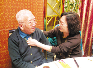 不過,莊夫人“揭發(fā)”道,莊奴也不只是寫情歌,他也有大氣的歌。一說起這,老先生又高興起來,他說,那是臺(tái)灣要拍一部電視專題片《詩(shī)詞的故鄉(xiāng)》,約他寫主題曲,他寫好了電視片沒拍成,詞卻留下來了,“一瀉千里的詩(shī)與詞,詩(shī)也美,詞也香……”老先生擊節(jié)吟誦著詞作,豪氣頓生。身邊有佳偶,老先生文思更如泉涌,幾乎是走一路,寫一路。他答應(yīng)記者說,下次來南京,呆的時(shí)間長(zhǎng)一點(diǎn),他會(huì)專門給南京寫首詞。