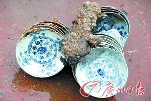 “南澳Ⅰ號”明代古沉船部分隔艙板已在水底現(xiàn)身,各組隔艙板之間滿是一摞摞碼放整齊的文物。記者昨日從廣東省文物局獲悉,由廣東省文物考古研究所與國家水下文化遺產(chǎn)保護(hù)中心共同實(shí)施的“南澳Ⅰ號”水下考古項(xiàng)目已經(jīng)取得階段性進(jìn)展,水下考古隊(duì)在抽取沉船上層覆蓋淤積物的過程中,已經(jīng)清理出相互平行的3組木質(zhì)沉船隔艙板,隔艙板之間間隔約為1米,這些間隔就是古船裝載貨物的空間。昨日,在發(fā)掘進(jìn)入船艙內(nèi)后,文物出水速度極快,昨日下午專家對已發(fā)現(xiàn)的“一號艙”進(jìn)行打撈,結(jié)果讓八吊籃文物從海底重見天日。