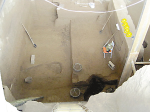 那么,與之緊鄰的1號(hào)陪葬墓是什么樣的呢?考古隊(duì)員告訴記者,此墓小于曹操墓,不是磚石墓,而是土坑墓,在迄今為止的發(fā)掘進(jìn)程中未發(fā)現(xiàn)一磚一石,全是土,且多處塌方。“土坑墓在戰(zhàn)國(guó)時(shí)期就有,魏晉南北朝時(shí)期很流行。安陽(yáng)之前也發(fā)現(xiàn)過(guò)不少土坑墓,但從來(lái)沒(méi)有見(jiàn)過(guò)像1號(hào)墓這么大的!痹摽脊抨(duì)員告訴記者,土坑墓有個(gè)好處,因?yàn)槎家阉,盜墓賊盜的時(shí)候要比磚石墓復(fù)雜得多。