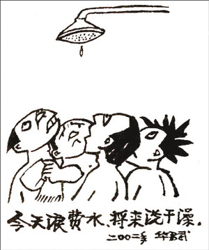 華君武的漫畫,早年長于政治時事漫畫,后期以諷刺畫為主,辛辣諷刺社會上種種丑陋、落后現(xiàn)象。構(gòu)思巧妙,入木三分,富有幽默感。
