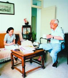 9時整,我輕輕叩開了華老的房門,開門的是華老的兒子。走進客廳,上穿靠色汗衫、下著同色系便褲,鬢發(fā)雪白、氣色卻不錯的華老正等候我們的到來,熱情地給我們讓了座。