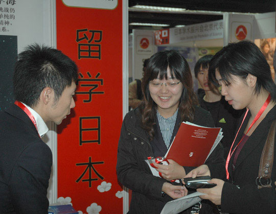 今天上午,2010年中國(guó)國(guó)際教育展在京拉開(kāi)帷幕。9點(diǎn)剛過(guò),在北京的展會(huì)現(xiàn)場(chǎng),前來(lái)咨詢海外留學(xué)政策的學(xué)生和家長(zhǎng)們已遍布各個(gè)學(xué)校的展位。據(jù)了解,今年有41所日本大學(xué)參加中國(guó)國(guó)際教育展,北京的展會(huì)為期兩天,將于17日下午結(jié)束,10月23日-24日將有35所日本大學(xué)參加上海的展會(huì)。