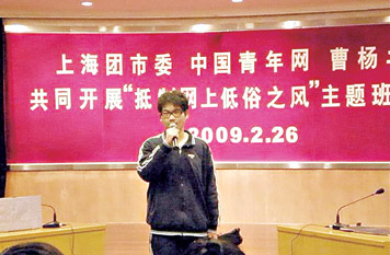 本報(bào)訊記者 范彥萍 “當(dāng)心我讓芙蓉姐嫁給你!”“裝A裝C莫裝(A+C)/2。 薄@些語(yǔ)言或許讓你一頭霧水,卻恰恰是網(wǎng)絡(luò)流行語(yǔ),更令人憂心的是,如今越來(lái)越多的學(xué)生們對(duì)這些不文明,甚至低俗的網(wǎng)絡(luò)語(yǔ)言信手拈來(lái),線上學(xué),線下用。今年初,全國(guó)開(kāi)展整治互聯(lián)網(wǎng)低俗之風(fēng)專項(xiàng)行動(dòng),專家更直言青少年是網(wǎng)絡(luò)低俗的最大受害者。昨天,由團(tuán)市委、中國(guó)青年網(wǎng)等主辦的“抵制網(wǎng)上低俗之風(fēng)”主題班會(huì)活動(dòng)在上海市曹楊二中和長(zhǎng)寧區(qū)愚園路第一小學(xué)開(kāi)展,趁著抵制之風(fēng)掃蕩網(wǎng)絡(luò)惡俗對(duì)校園文化的惡劣影響。