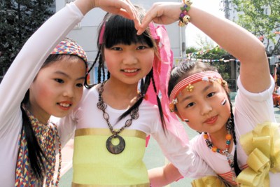 晚報(bào)訊昨天,盧灣區(qū)瞿溪路小學(xué)的師生們自行設(shè)計(jì)一次探尋世博文化的旅行。其中,師生們動手制作世博參展國的服裝,在校園T臺走秀。日本素雅端莊的和服、斐濟(jì)五彩斑斕的草裙、泰國金絲耀眼的紗麗。服飾看起來十分精美,異國風(fēng)情十足,可一打聽,這些參展國服裝可全是巧手的師生們用布頭、塑料臺布等廢舊材料制作的。除了T臺秀,學(xué)校創(chuàng)編了世博熱舞,男孩女孩齊參與,舞出活力;《海寶歡迎你》的主旋律在班班響起,自編自演的世博童謠串串燒在校園回蕩! 跤浾 錢鈺 攝影 方大綜