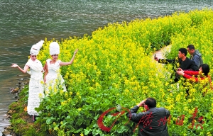 本報(bào)訊(記者海國攝影報(bào)道)昨日,從化石門公園金海節(jié)開幕前,來自西安交大的兩名女大學(xué)生,分別身穿一件全部由白紙制的成環(huán)保衣服,穿梭在花中向游人宣傳環(huán)保觀念。據(jù)該服裝設(shè)計(jì)的作者、環(huán)保主義者朱女士說:創(chuàng)作靈感來自哥本哈根會(huì)議。兩件服裝分別花費(fèi)一個(gè)星期,用了90多筒卷紙折疊而成,希望人類保護(hù)自然,愛護(hù)環(huán)境,不然五光十色的地球?qū)⑼噬,變成單一的白色?table border=0 cellspacing=0 cellpadding=0 align=left>
