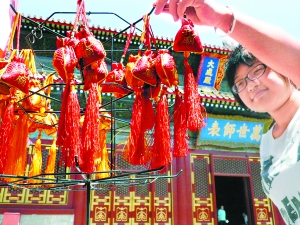 本報(bào)訊(記者李環(huán)宇)今天8時(shí)30分,孔廟和國(guó)子監(jiān)博物館的大門(mén)剛剛打開(kāi),專(zhuān)程趕來(lái)的市民吳先生便徑直來(lái)到位于孔廟大成殿西南側(cè)的祈福包售貨處,興沖沖地為今年參加高考的女兒購(gòu)買(mǎi)了一只黃色的祈福包。隨著高考的臨近,有著“金榜題名”、“狀元及第”等吉祥寓意的祈福筆、祈福包等物件受到了考生和家長(zhǎng)的青睞,而全國(guó)聞名的北京孔廟和國(guó)子監(jiān)博物館出售的祈福包更是受到家長(zhǎng)和考生們的追捧,有的家長(zhǎng)甚至坐飛機(jī)專(zhuān)程從外地趕來(lái)孔廟,只為“求”個(gè)祈福包。