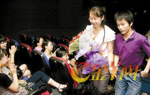 這對(duì)情侶都是老師,男的叫劉天平,一所師范學(xué)院人文學(xué)院的老師,女的名叫杜晶,一所學(xué)校的數(shù)學(xué)老師。這對(duì)情侶兩年前相識(shí)后,拍拖最多的地方就是電影院。劉天平告訴記者,戀愛后只要有空,一定會(huì)到電影院看電影,兩年來幾乎不會(huì)放過任何一部電影。“我們特別喜歡憂郁、浪漫的電影,每次看電影,我們都與電影里的人物一起哭、一起笑。電影已經(jīng)成為我們生活中很重要的一部分!