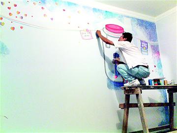 “傳統(tǒng)裝修視覺上平面、乏味,而墻繪卻可以營造出立體感,個性十足!笔袌稣{(diào)查后,陳斌決定創(chuàng)辦一個墻繪工作室,既能發(fā)揮自己的美術(shù)專業(yè)專長,又能實現(xiàn)創(chuàng)業(yè)夢想。同學武杰一拍即合,兩人果斷籌集了1萬元啟動資金,并邀請劉慧等3名女同學加入進來。今年5月17日,5位大學生的工作室正式成立。
