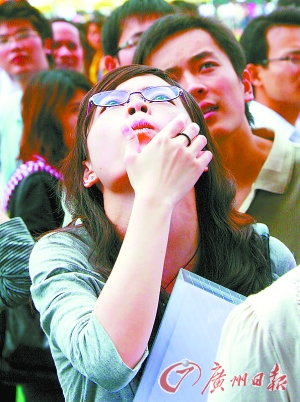 今年在某二類高校讀大四的畢業(yè)生小王,跨校、跨專業(yè)報考了北京一所重點大學新聞系的碩士研究生,但因距離分數(shù)線3分之遙而落榜。得知自己落榜消息的小王,趕緊利用周末時間參加了在4月10日舉行的廣東省2010應(yīng)屆畢業(yè)生招聘會,在會場外猶豫了許久的她抬起頭深深地呼吸了一口氣,然后整理了一下著裝便走進了會場。