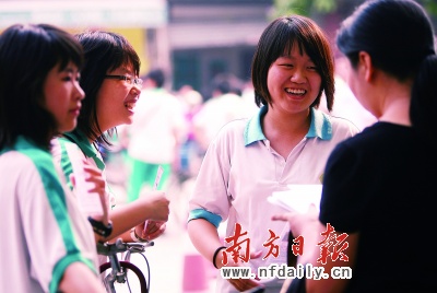 而來得早的學(xué)生們圍在學(xué)校對面的小賣部門前,三五成群地吃著雪糕聊天!安慌鲁詨亩亲佑绊懣荚嚸?”面對記者的提問,佛山四中3名女生笑著說:“不怕!碑敱粏柤熬o不緊張的時候,其中一個戴眼鏡的女生笑著說:“說緊張那是以前的事了,經(jīng)過這么長時間復(fù)習(xí),心態(tài)早就調(diào)整好了!彼齻兊募议L都沒來也不準備來送考!拔也蛔屗麄儊,來不來沒什么分別,他們還要上班!奔易⌒l(wèi)國路的小劉對考后對答案也不忌諱,“當然是最好不要對了,不過對不對沒什么關(guān)系。”