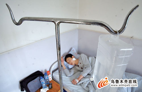 烏魯木齊在線訊(記者劉盼 梁坤 實(shí)習(xí)記者郭曉寧攝影報(bào)道) 5月13日中午,新疆法制報(bào)攝影記者郭詠在烏魯木齊市幸福路15小學(xué)附近采訪時(shí),遭到一店主毆打,面部受傷。新疆記者協(xié)會(huì)副主席、新華社新疆分社社長(zhǎng)樊英利前往醫(yī)院看望慰問受傷記者。
