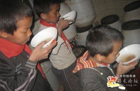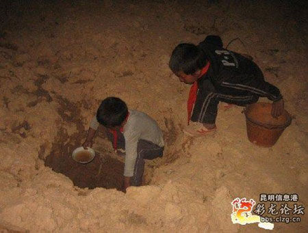 “不忍心拍這些照片,因?yàn)槲覜]幫到孩子們什么!”日前,網(wǎng)友“haotian”在彩龍論壇上發(fā)了篇題為《旱情加重,學(xué)生喝水告急》的圖片帖,稱是在云南南華縣灑披武村拍攝的,因?yàn)槿彼畬W(xué)生們很久不洗手了,吃飯后只能到河里或幾近干枯的井里打些渾濁歲來解渴,照片被各大網(wǎng)站轉(zhuǎn)載后,不少網(wǎng)友稱看著讓人想哭。文/滾動(dòng)新聞?dòng)浾?耿紅仁 圖/“haotian”提供