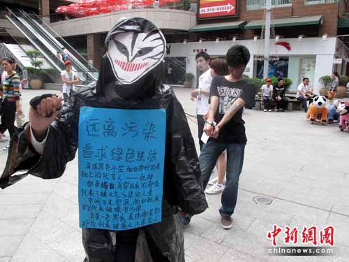 大學生們從另類藝術(shù)的角度呼吁人們關(guān)注氣候,倡導環(huán)保低碳的生活方式。其中,他們利用廢報紙、塑料袋等廢舊物,精心制作了時尚環(huán)保服裝,吸引了市民的眼球,而學生們身著這些衣服表演的“另類”時裝秀更是讓市民大開眼界。