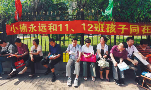 各個考點門前,除了前來送考生的家長外,老師們也都紛紛趕來為學生們鼓勁兒。省實驗中學的一位老師特意拿來“班旗”,在旗幟下同學們合影留念。